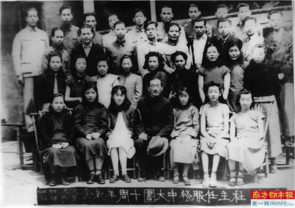 2. 1944年4月4日,杜定友(前排中)在国立中山大学图书馆工作十周年与全体工作人员合影。广东省立中山图书馆(广东省古籍保护中心)供图