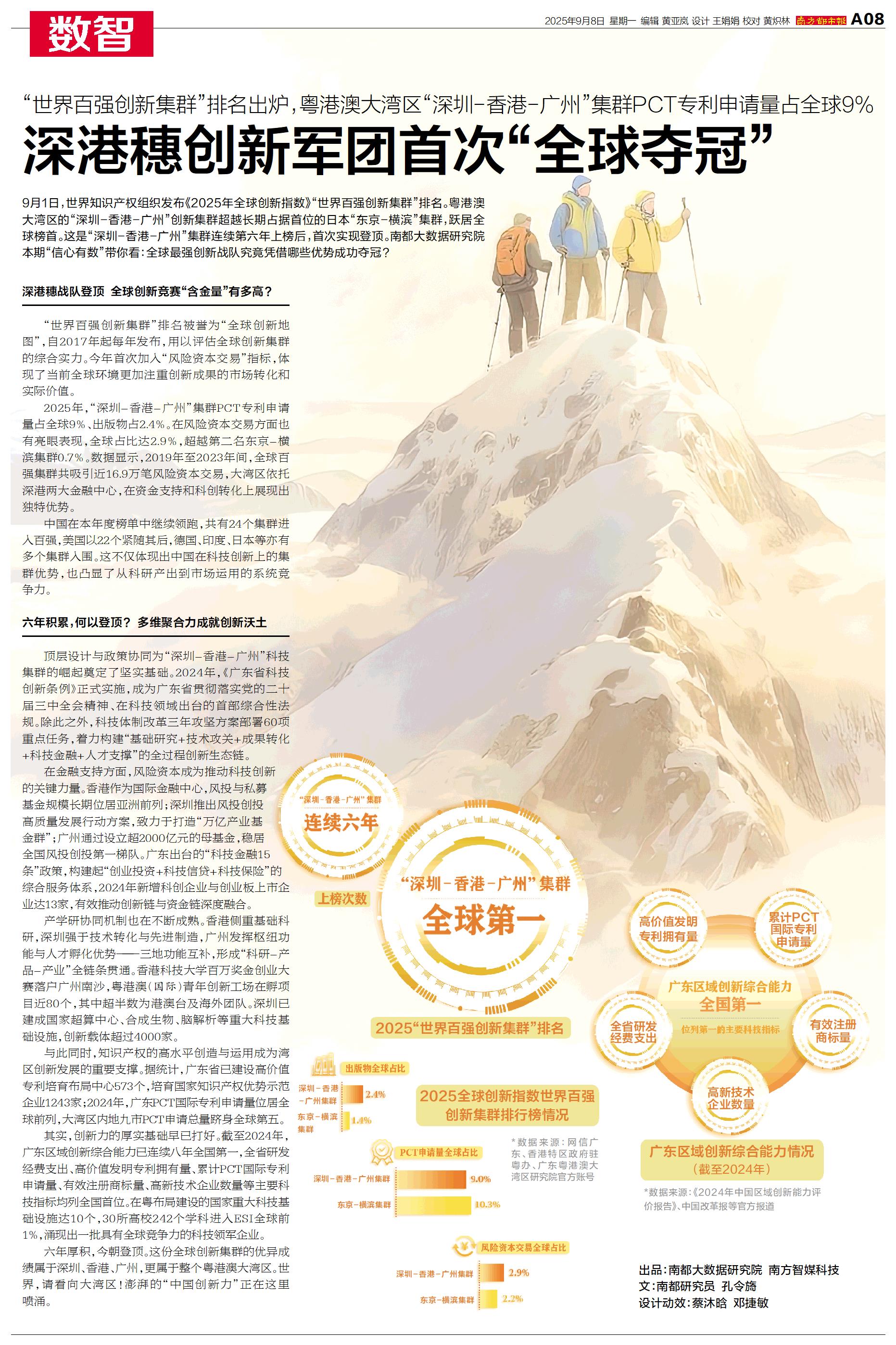 9月1日,世界知识产权组织发布《2025年全球创新指数》“世界百强创新集群”排名。