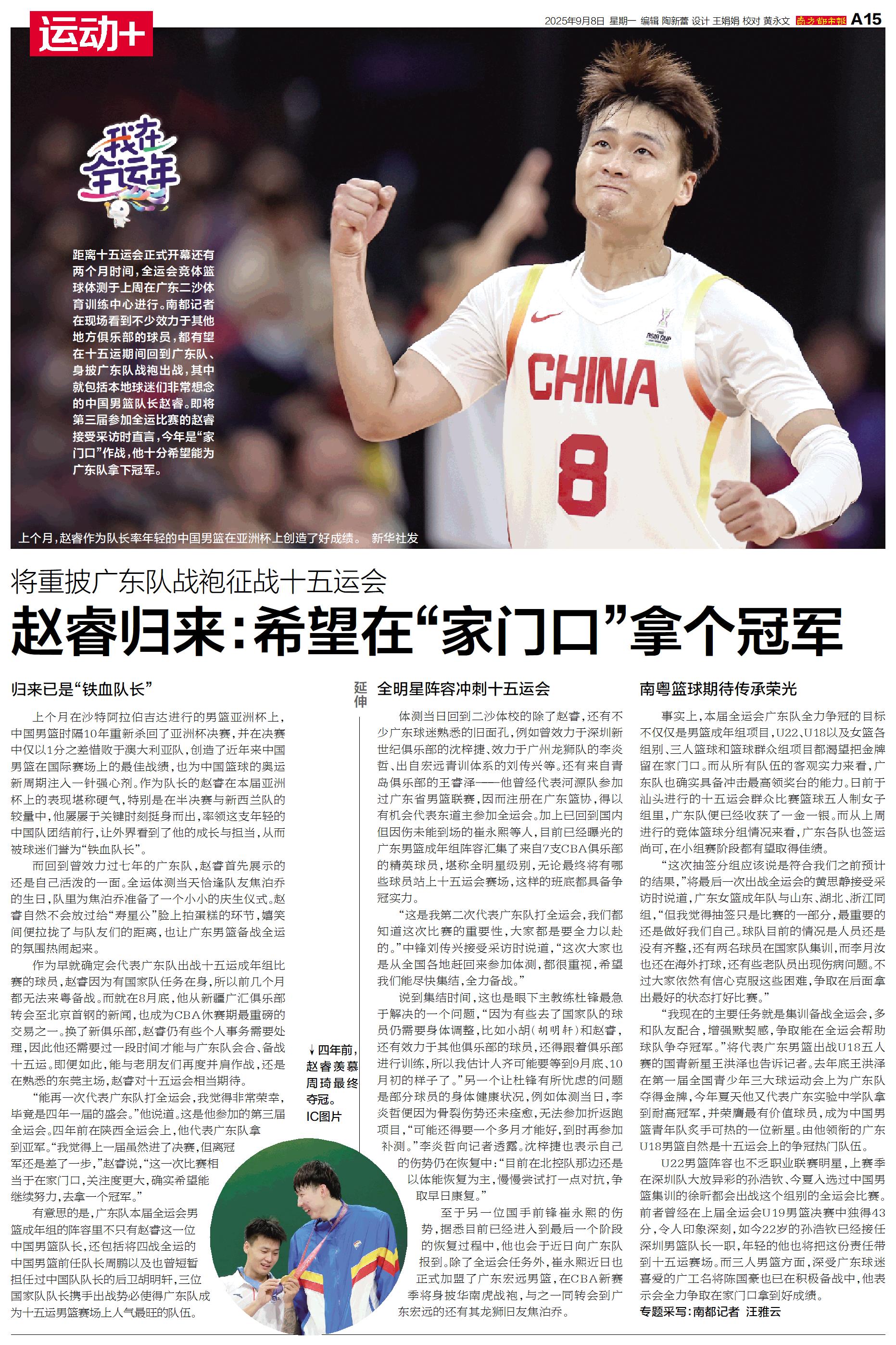 距离十五运会正式开幕还有两个月时间,全运会竞体篮球体测于上周在广东二沙体育训练中心进行。