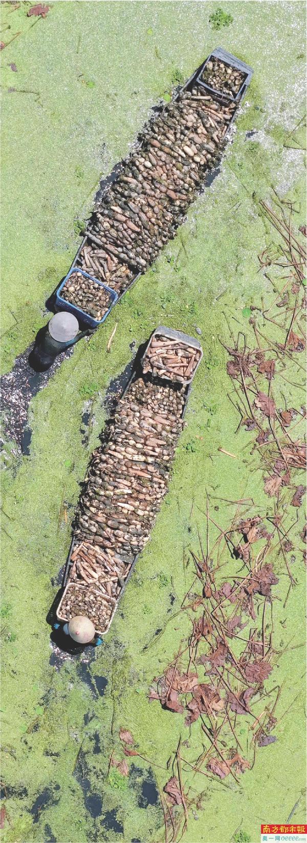 ⒈9月6日,广州增城石滩镇凰埔村,藕农推开浮萍,于粼粼波光中采收莲藕。