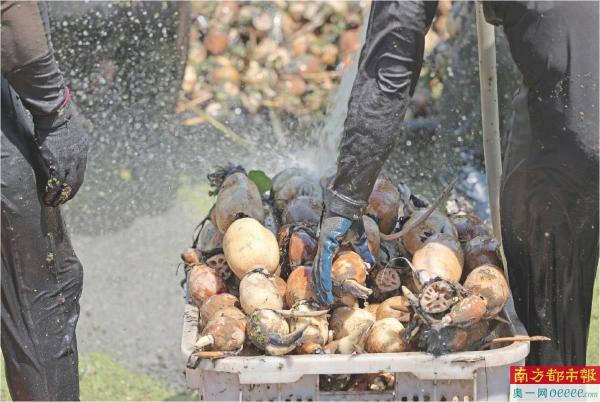 刚出水的莲藕经清流冲洗,更显得莹白如玉。它们肥硕鲜嫩,在竹筐中渐次排列,散发出淡淡的荷香。这里的农人深谙鲜藕的灵性:需在黎明时分采撷,赶在日暮之前发运,以最短的旅途封存最饱满的水润与清甜。来自珠三角的商贩早已闻香而至,更有港澳与海外的订单跨洋而来,让这一口岭南的秋日鲜香,飘向万里之外的餐桌。