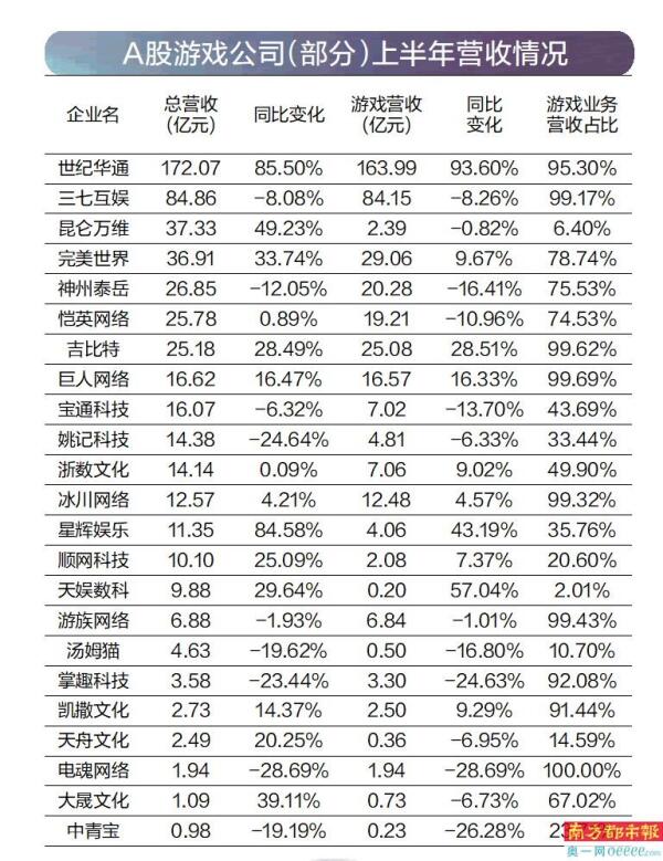 值得一提的是,神州泰岳也是净利润超5亿元的7家企业中唯一出现利润下滑的。此外,掌趣科技、昆仑万维、凯撒文化等公司上半年的盈利状况不甚乐观。