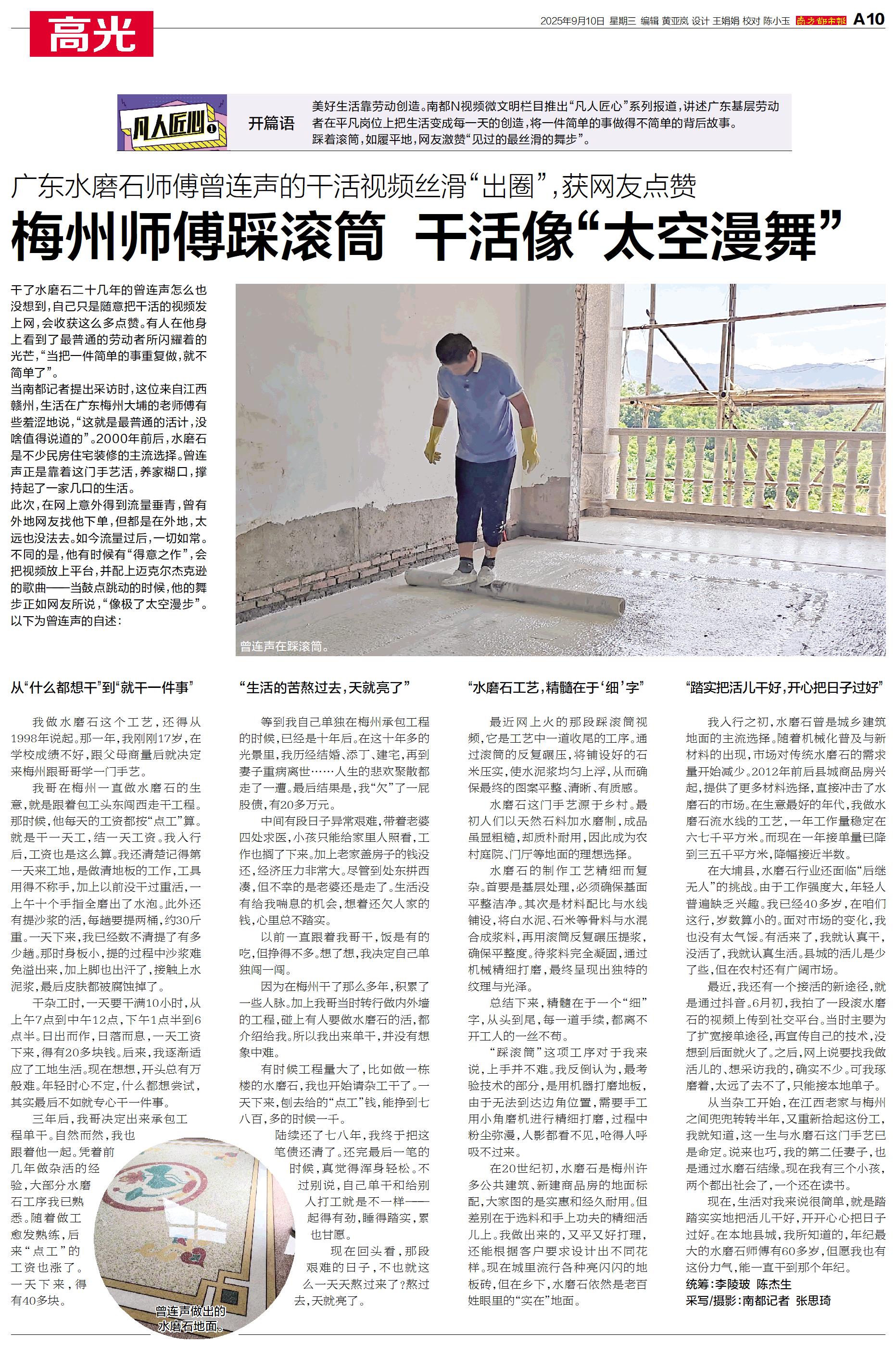 美好生活靠劳动创造。南都N视频微文明栏目推出“凡人匠心”系列报道,讲述广东基层劳动者在平凡岗位上把生活变成每一天的创造,将一件简单的事做得不简单的背后故事。