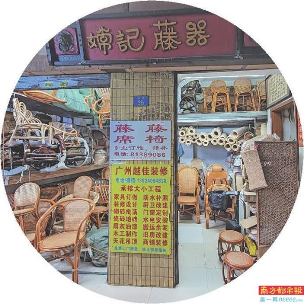 走进荔湾区龙津东路的一条小巷深处,就能找到嫦姨那个小小的铺面。她的生活就在这方寸之间展开:楼下是生意,楼上是生活。每天,她在店里那张不到一米宽的桌子前,用两把刀,将一根根普通的藤条,变成精美的藤器。她笑言,“我们就是靠这两把刀,把一家子养活的”。
