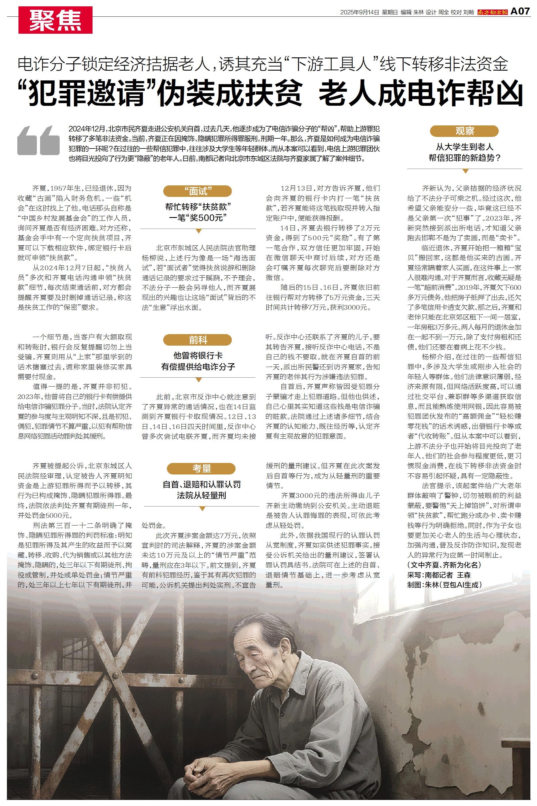 “犯罪邀请”伪装成扶贫 老人成电诈帮凶