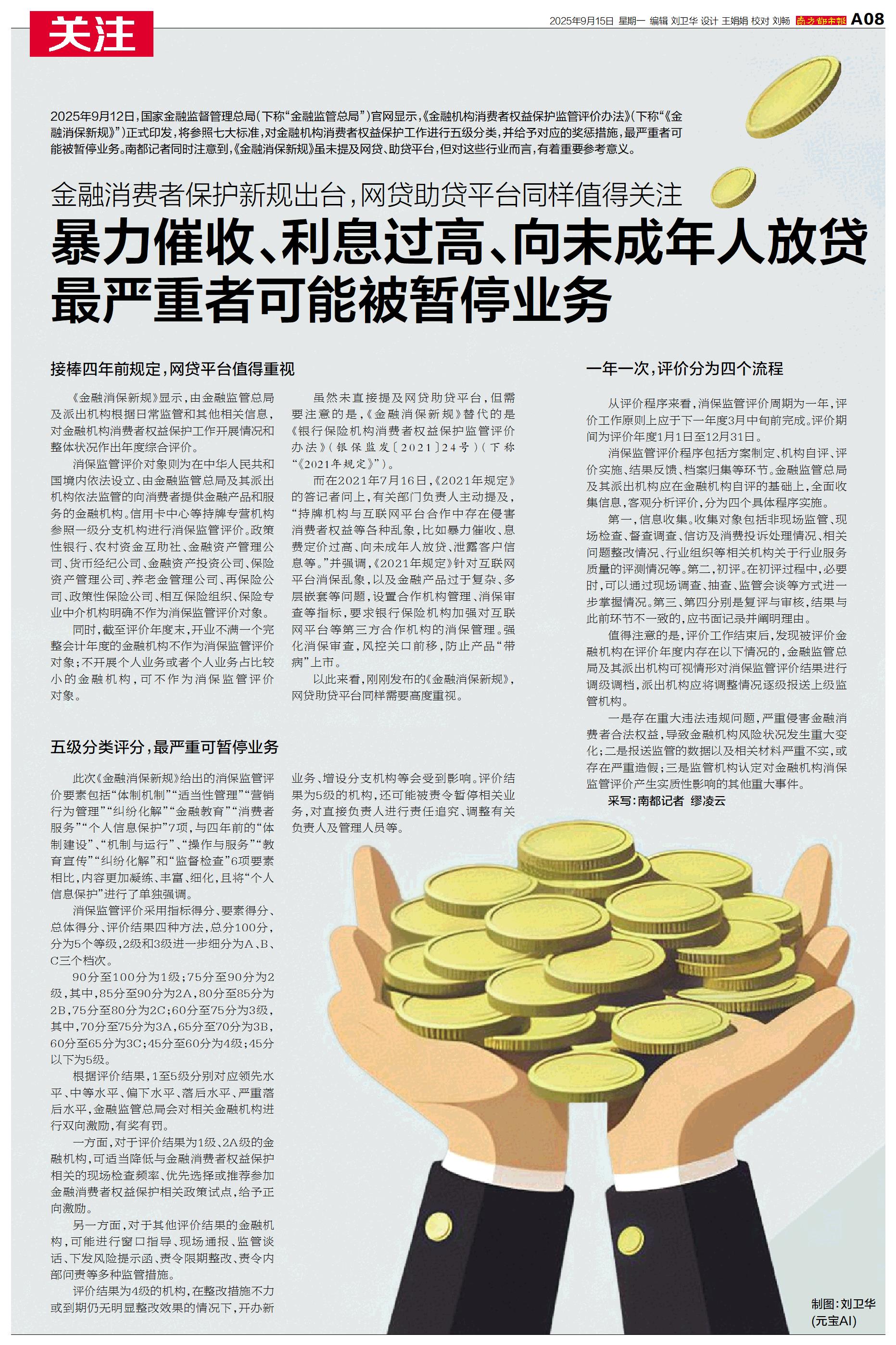 2025年9月12日,国家金融监督管理总局官网显示,《金融机构消费者权益保护监管评价办法》正式印发。