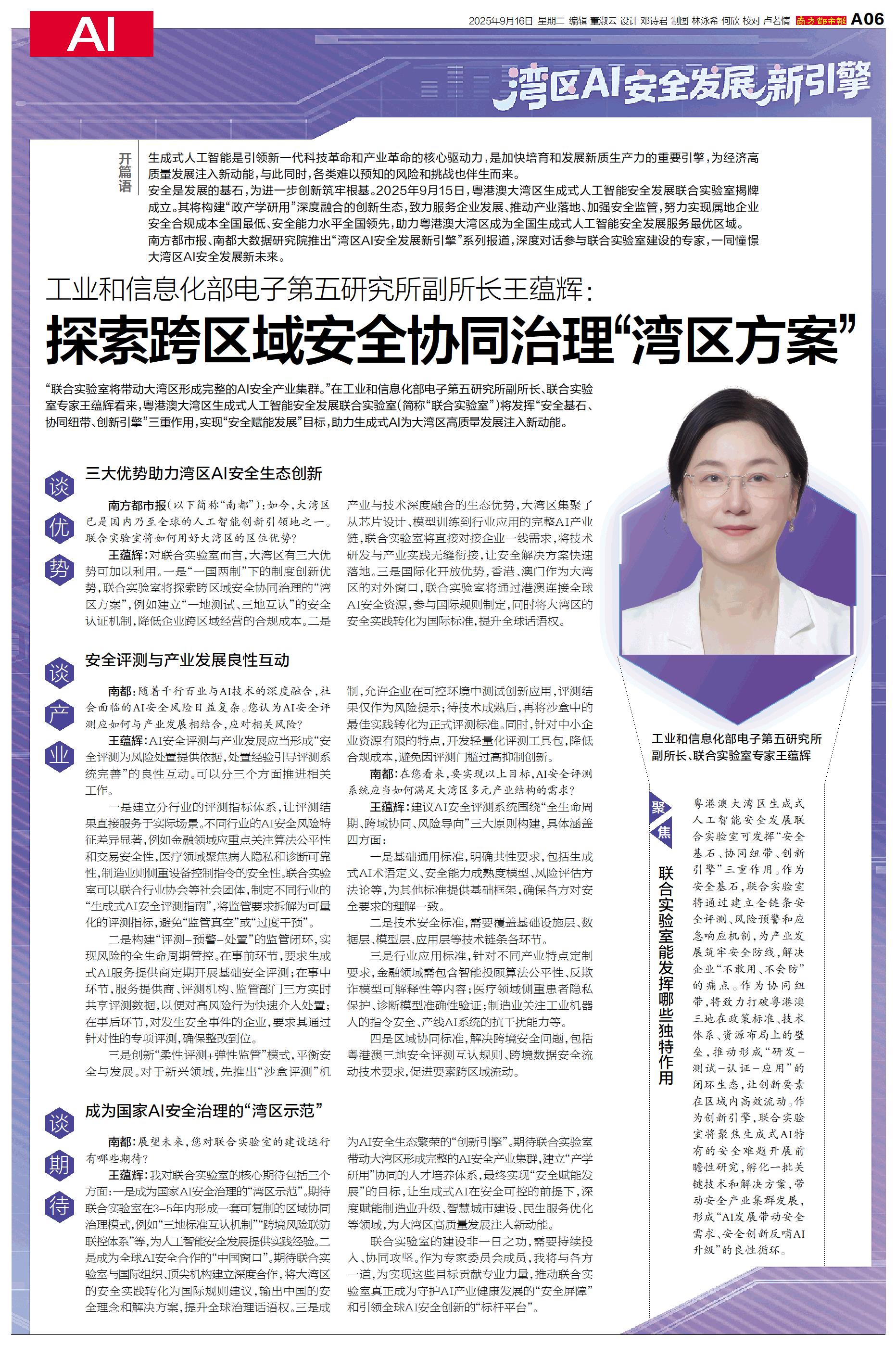 2025年9月15日,粤港澳大湾区生成式人工智能安全发展联合实验室揭牌成立。