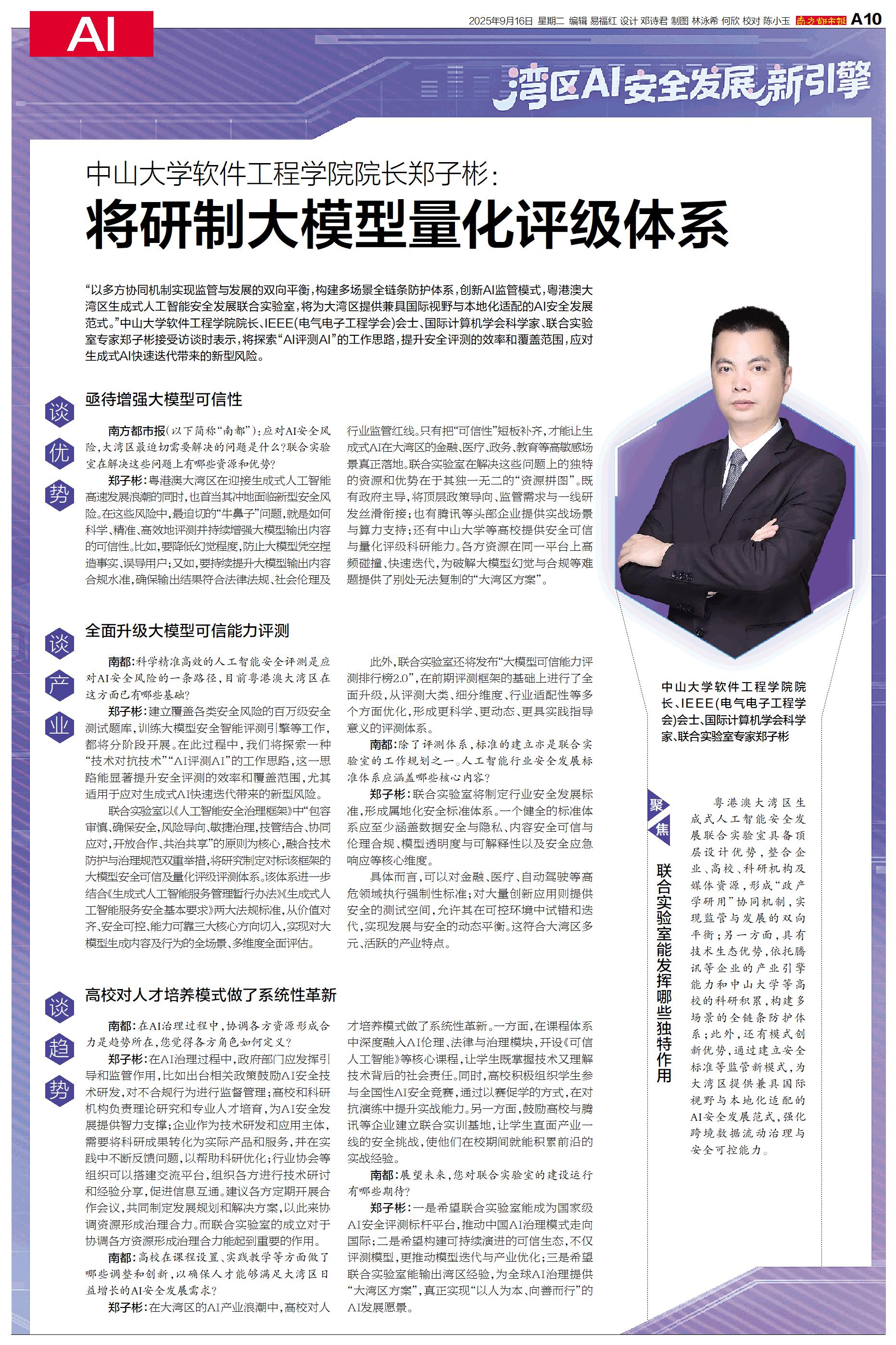 联合实验室专家郑子彬接受访谈时表示,将探索“AI评测AI”的工作思路,提升安全评测的效率和覆盖范围,应对生成式AI快速迭代带来的新型风险。
