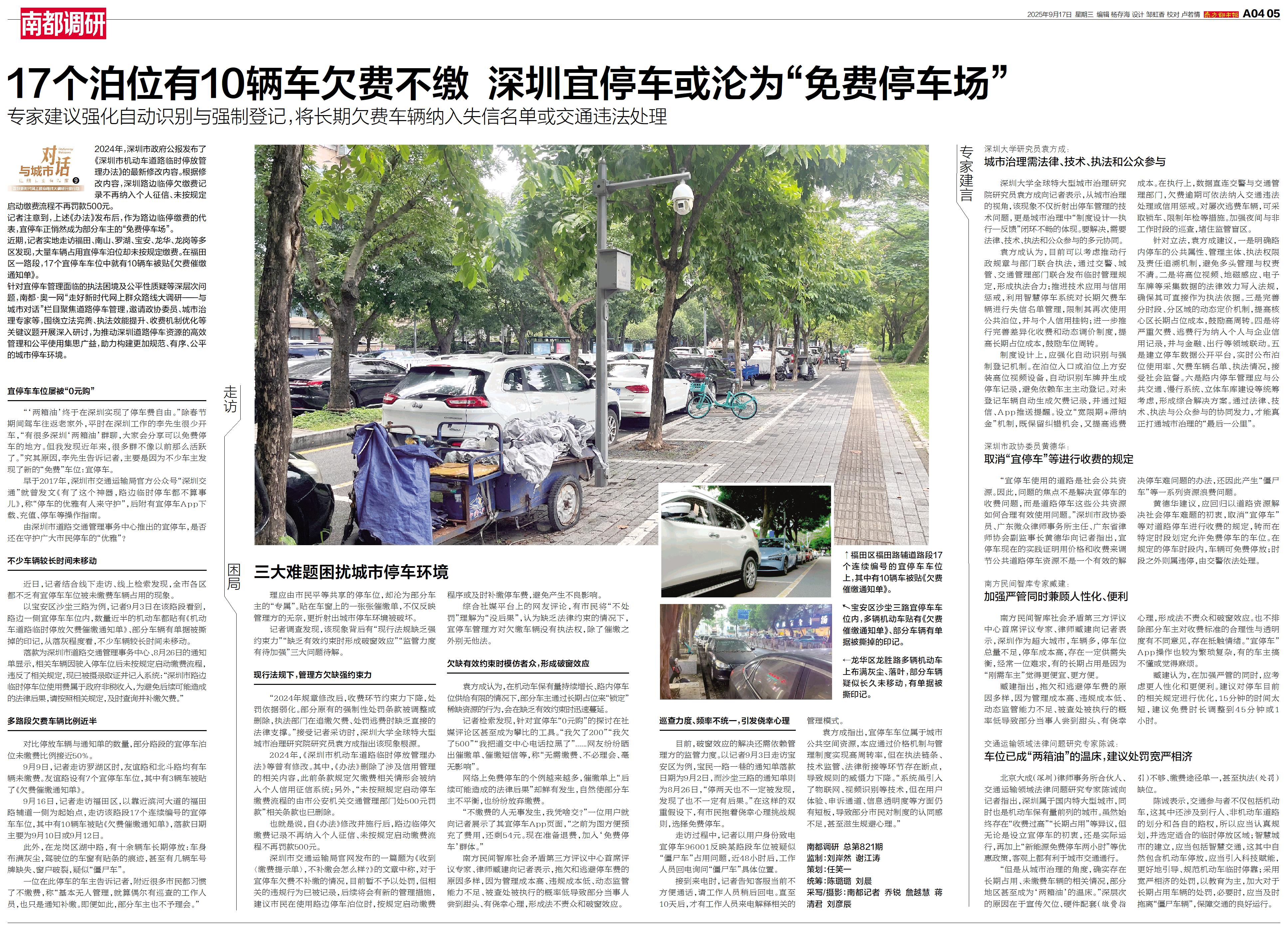 深圳大学全球特大型城市治理研究院研究员袁方成向记者表示,从城市治理的视角,该现象不仅折射出停车管理的技术问题,更是城市治理中“制度设计—执行—反馈”闭环不畅的体现。要解决,需要法律、技术、执法和公众参与的多元协同。