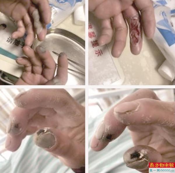 杨志前表示,氢氟酸灼伤有其明显的特殊性,其中的氟离子可溶解细胞膜,造成表皮、真皮、皮下组织损伤,剧烈疼痛,皮肤发黑甚至坏死,损伤可从皮肤逐渐向深层组织蔓延,直至骨膜和骨质,严重的可引起骨质坏死。