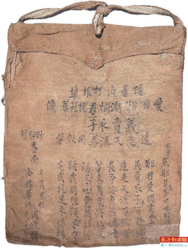 侨胞曾赠送郑潮炯一个布袋,赞其义举。 江门市博物馆供图