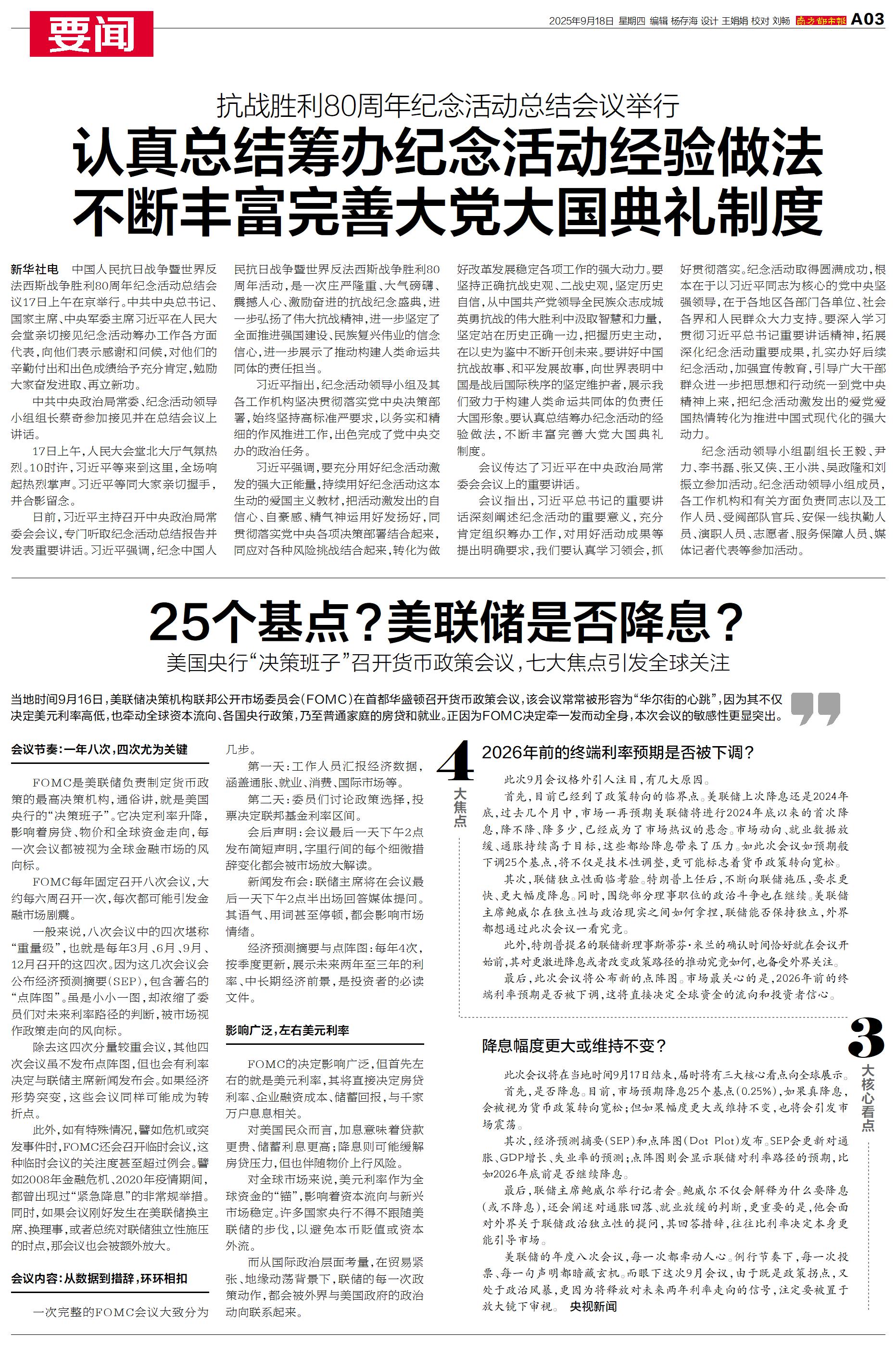 中国人民抗日战争暨世界反法西斯战争胜利80周年纪念活动总结会议17日上午在京举行。