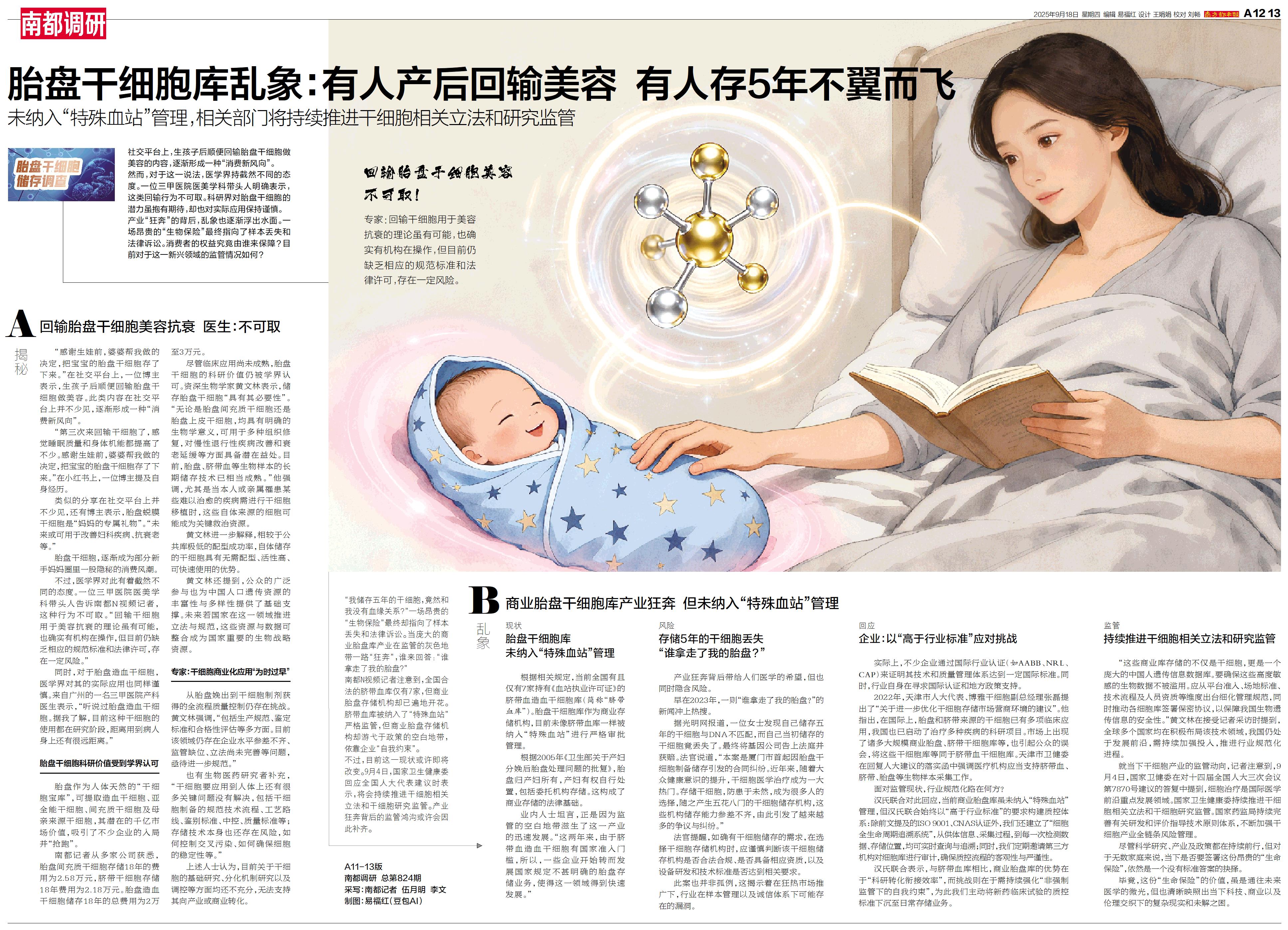 胎盘干细胞库乱象:有人产后回输美容 有人存5年不翼而飞