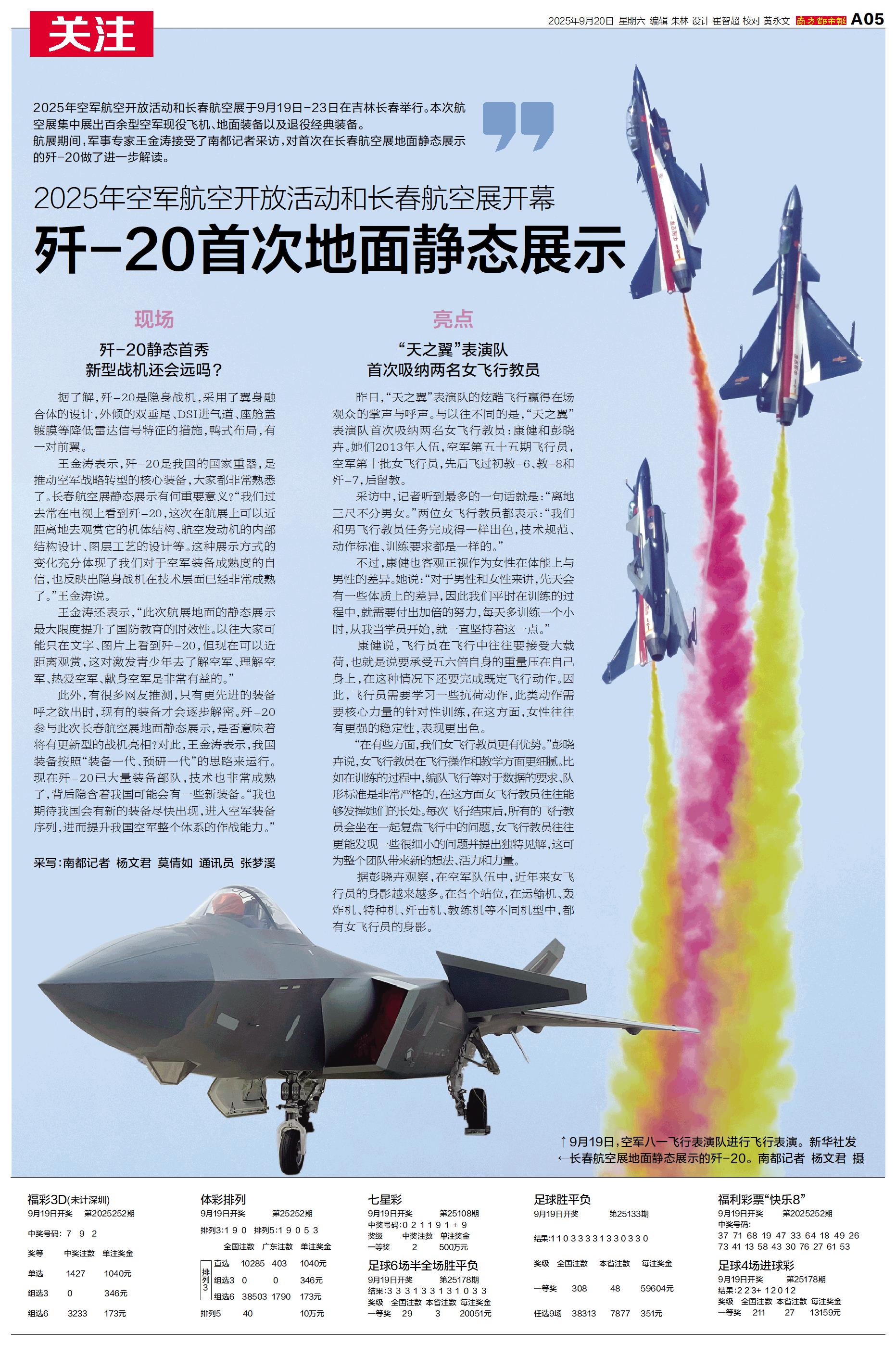 长春航空展地面静态展示的歼-20。 南都记者 杨文君 摄