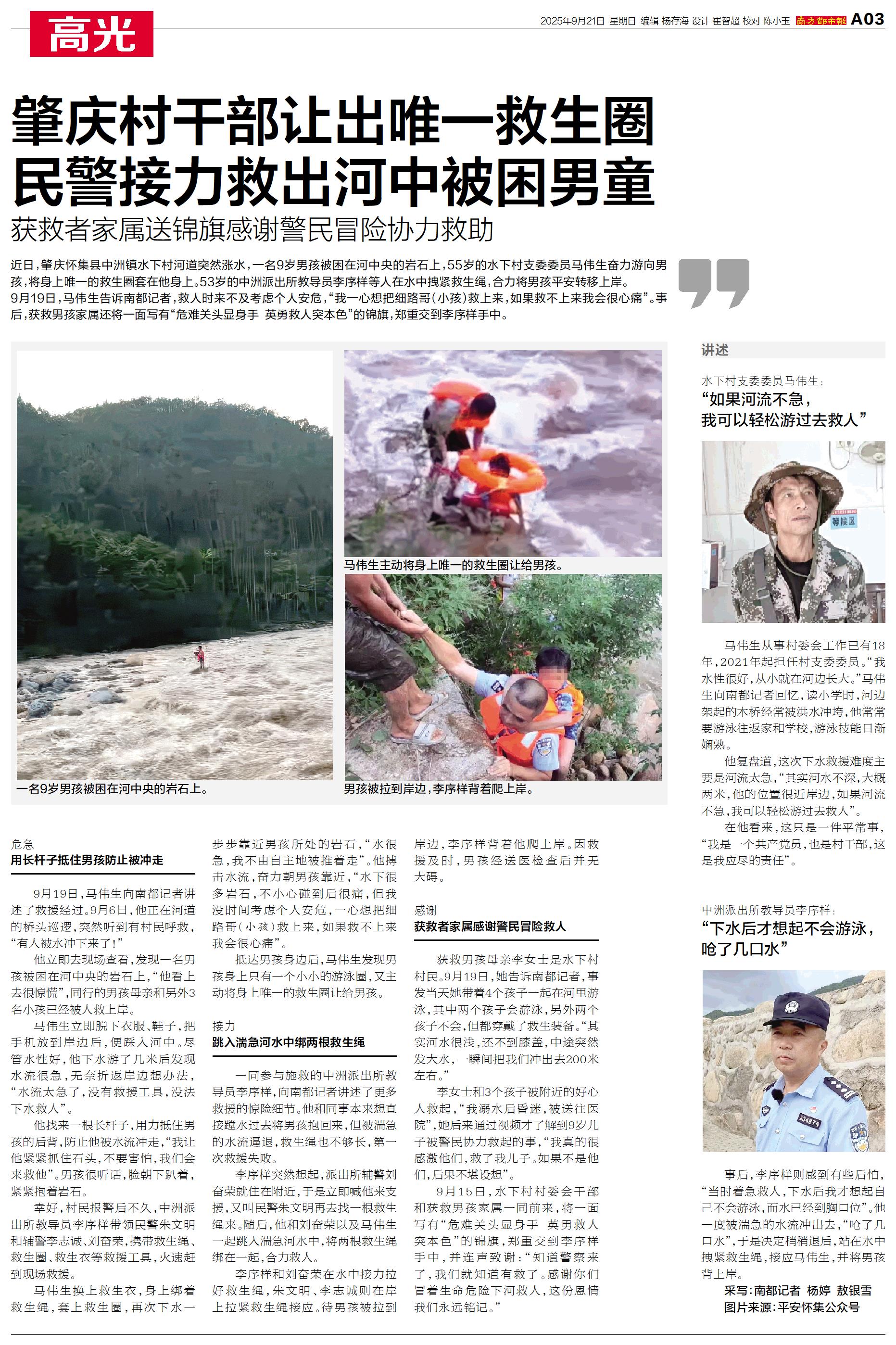 肇庆村干部让出唯一救生圈 民警接力救出河中被困男童