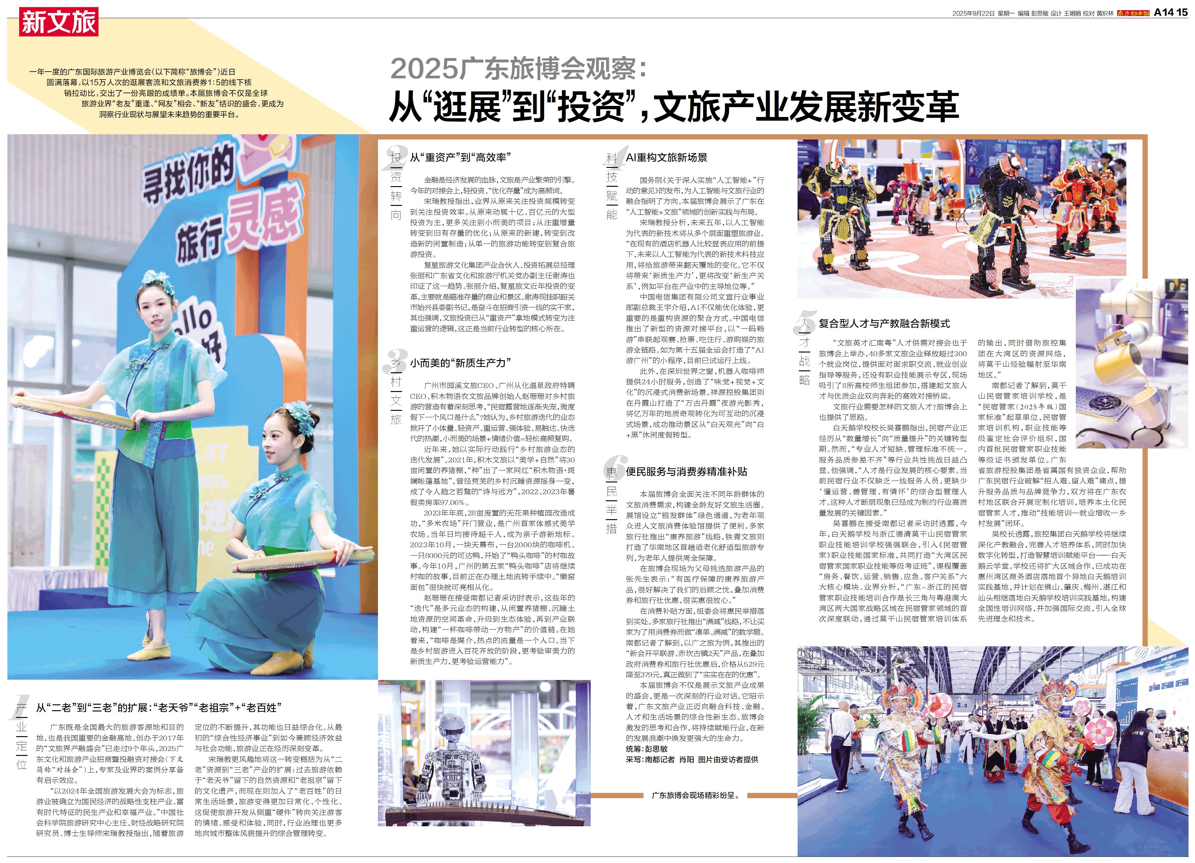 一年一度的广东国际旅游产业博览会近日圆满落幕,以15万人次的逛展客流和文旅消费券1:5的线下核销拉动比,交出了一份亮眼的成绩单。
