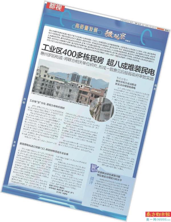 南都4月15日A07版,聚焦“工业区400多栋民房 超八成难装民电”。