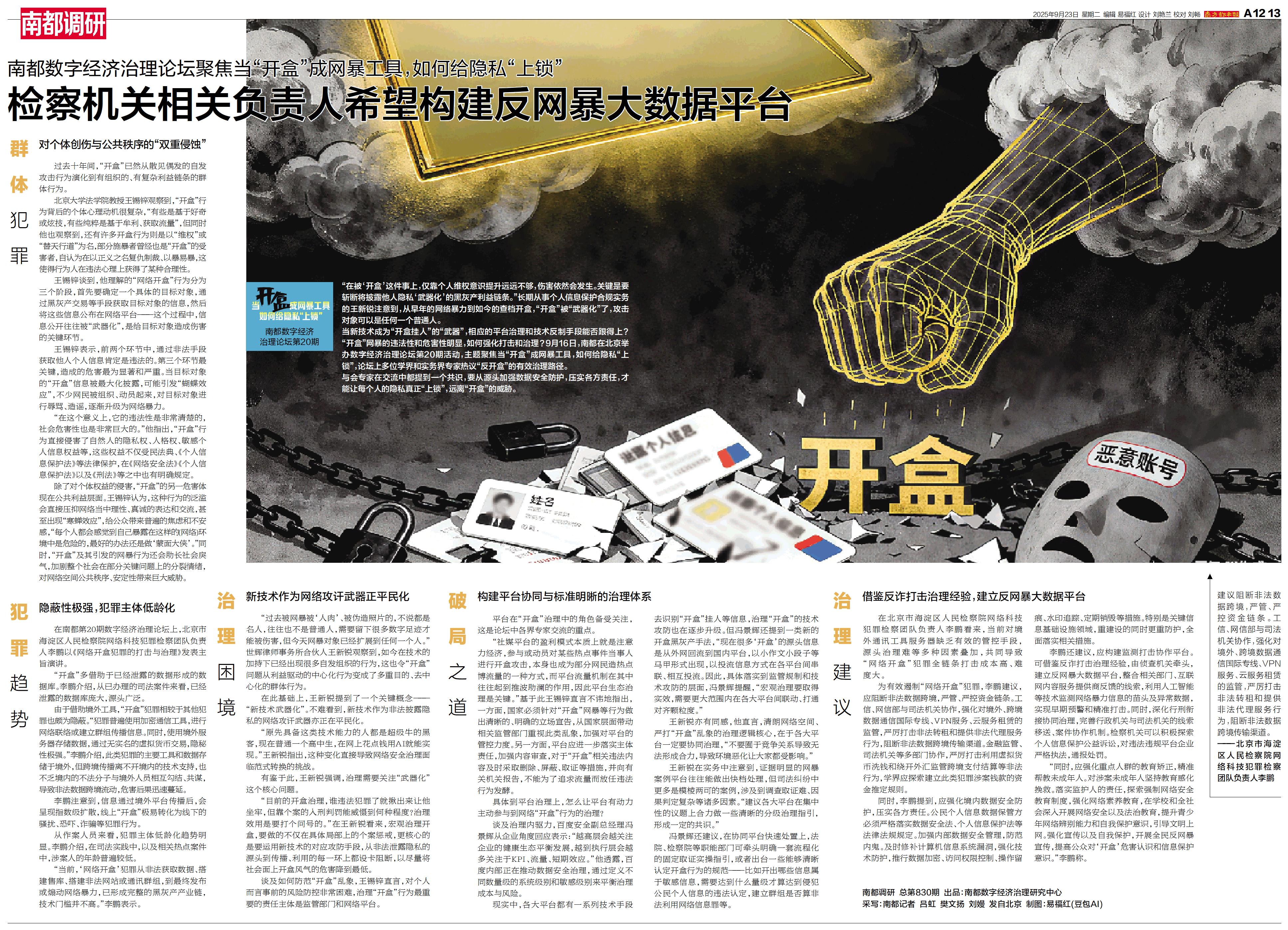 检察机关相关负责人希望构建反网暴大数据平台