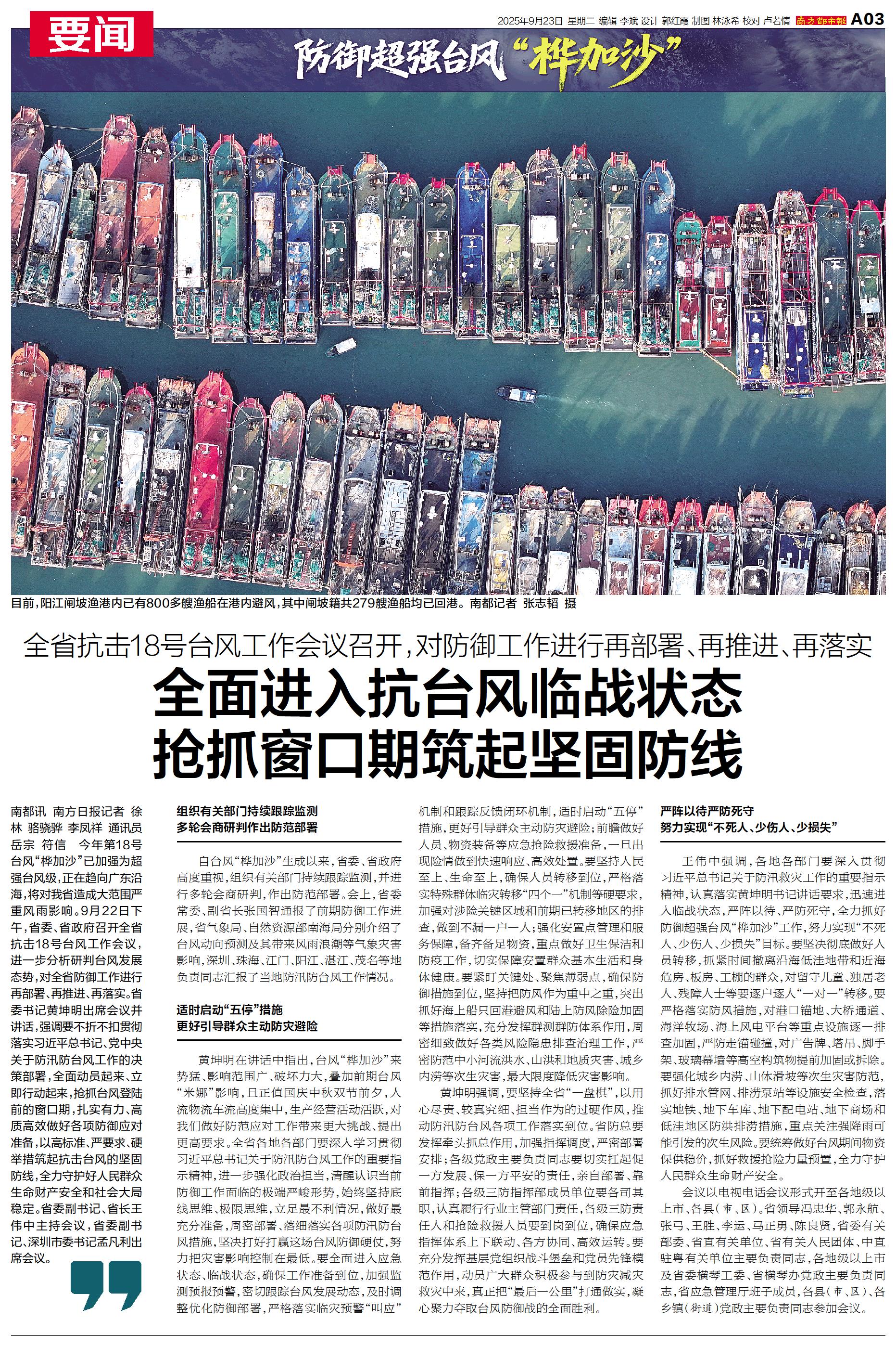 全面进入抗台风临战状态 抢抓窗口期筑起坚固防线