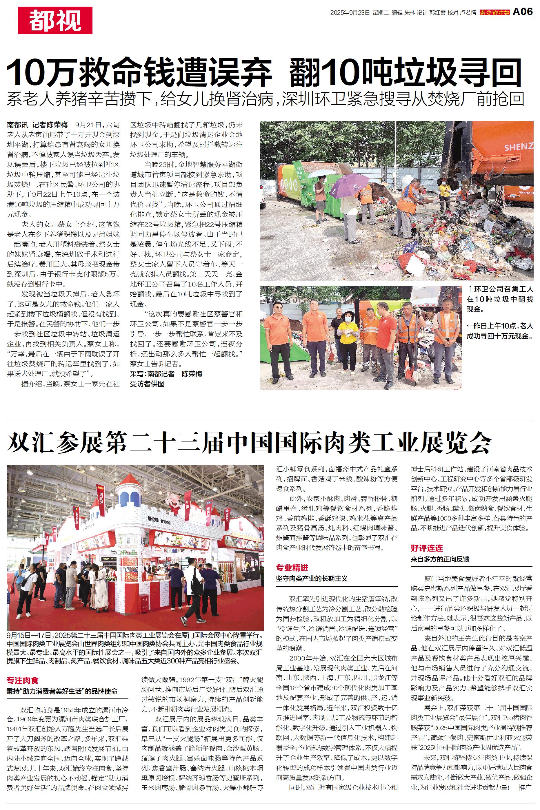 9月21日,六旬老人从老家汕尾带了十万元现金到深圳平湖,打算给患有肾衰竭的女儿换肾治病,不慎被家人误当垃圾丢弃。