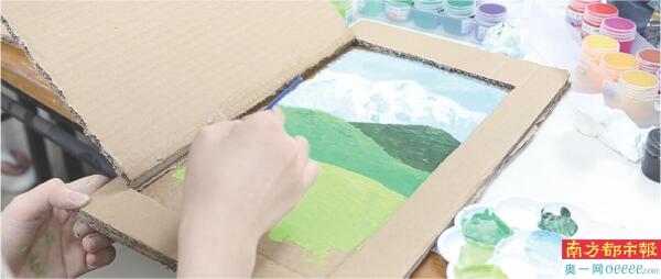 在复学营的“交替画”活动中,她画了心中“窗外”的景色:前景是充满生机的黄绿草地,接着是深浅不一的绿色山峦,远处则是巍峨的雪山与澄澈蓝天。“做自己擅长又喜欢的事,能减压”,画笔在纸上铺展的瞬间,焦虑也一点点消散。