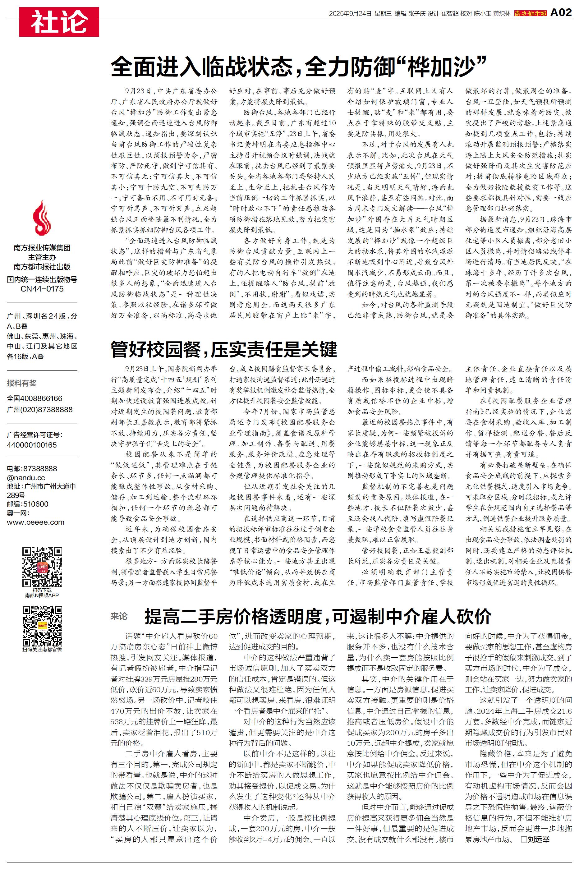 9月23日,中共广东省委办公厅、广东省人民政府办公厅就做好台风“桦加沙”防御工作发出紧急通知,强调全面迅速进入台风防御临战状态。