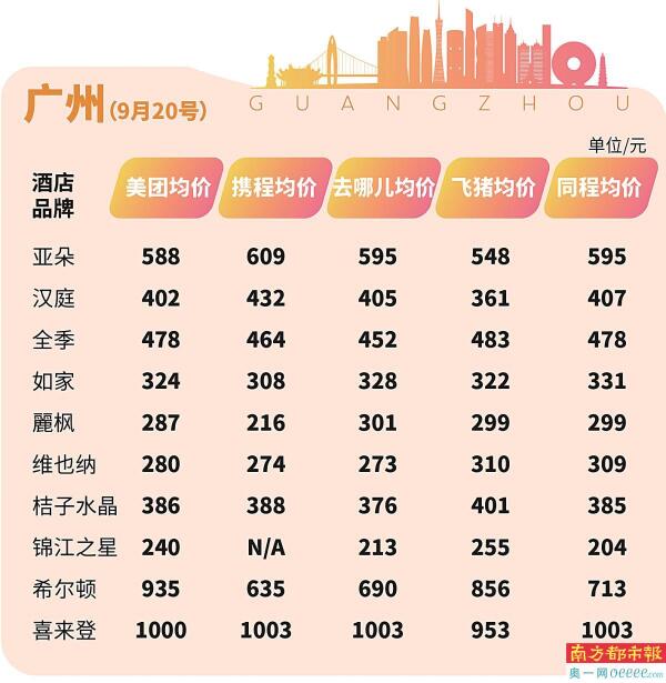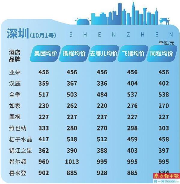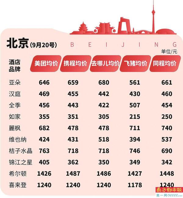 携程、去哪儿酒店价格国庆期间涨幅较高
