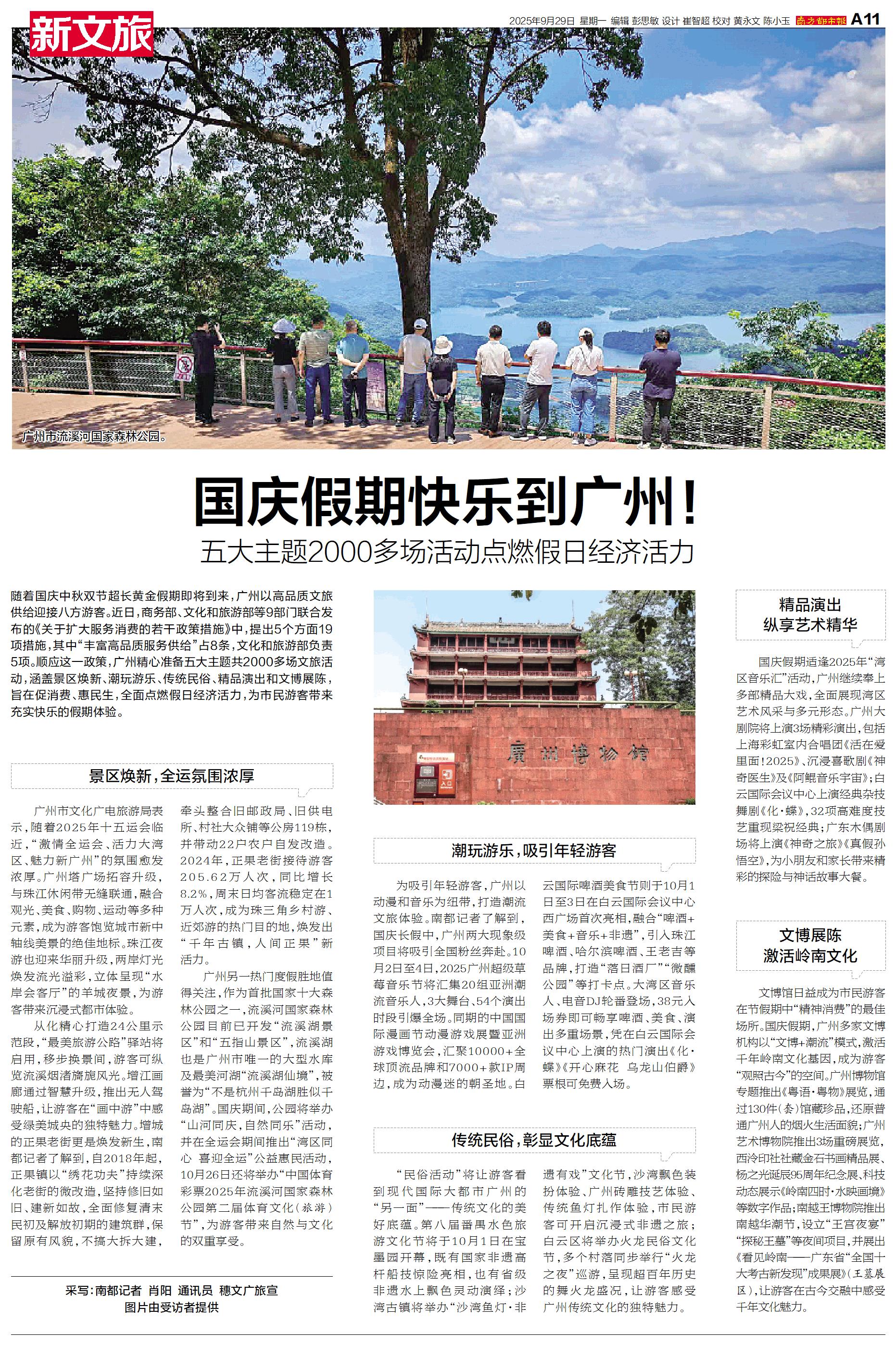 随着国庆中秋双节超长黄金假期即将到来,广州以高品质文旅供给迎接八方游客。