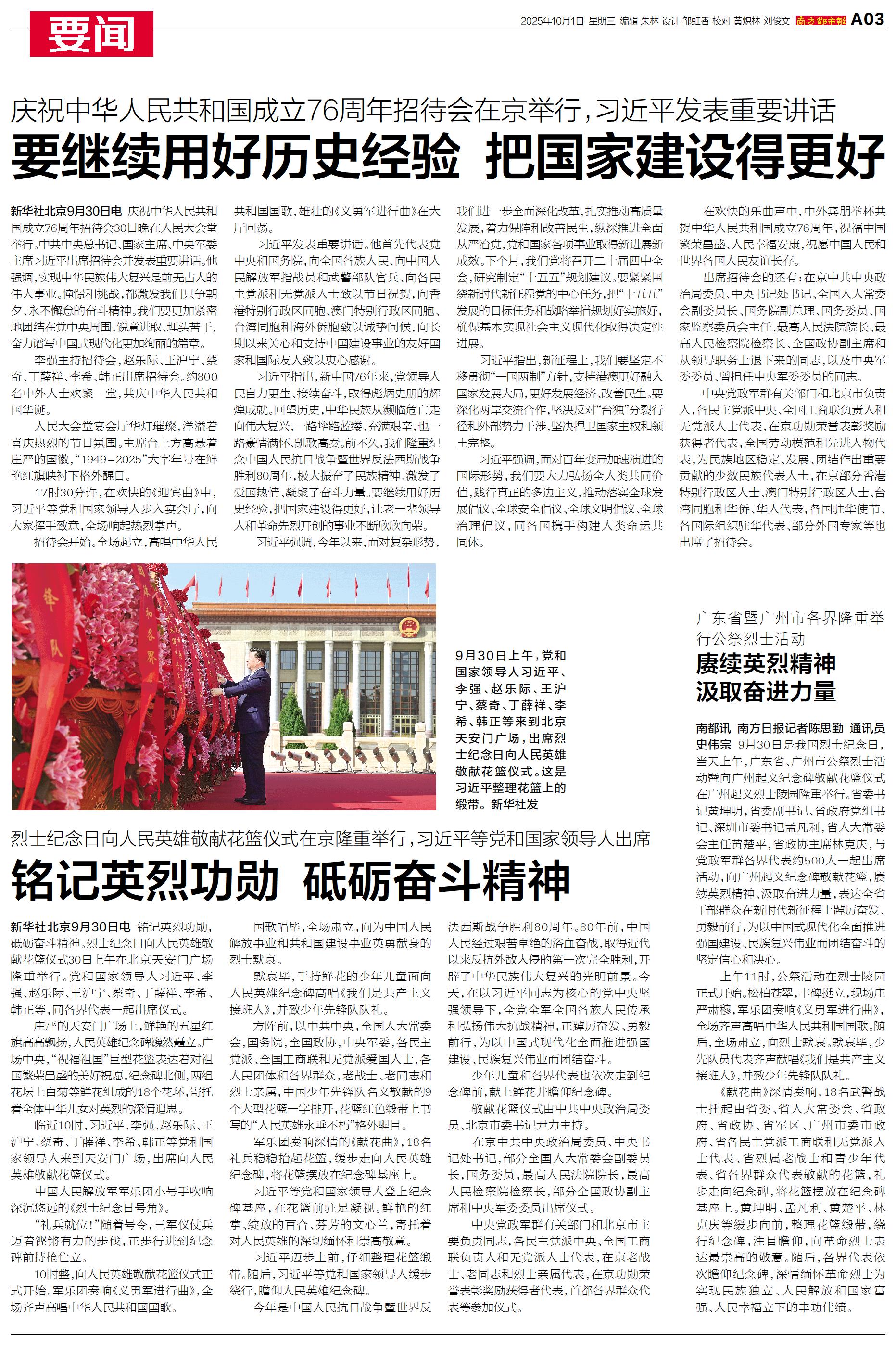 庆祝中华人民共和国成立76周年招待会30日晚在人民大会堂举行。