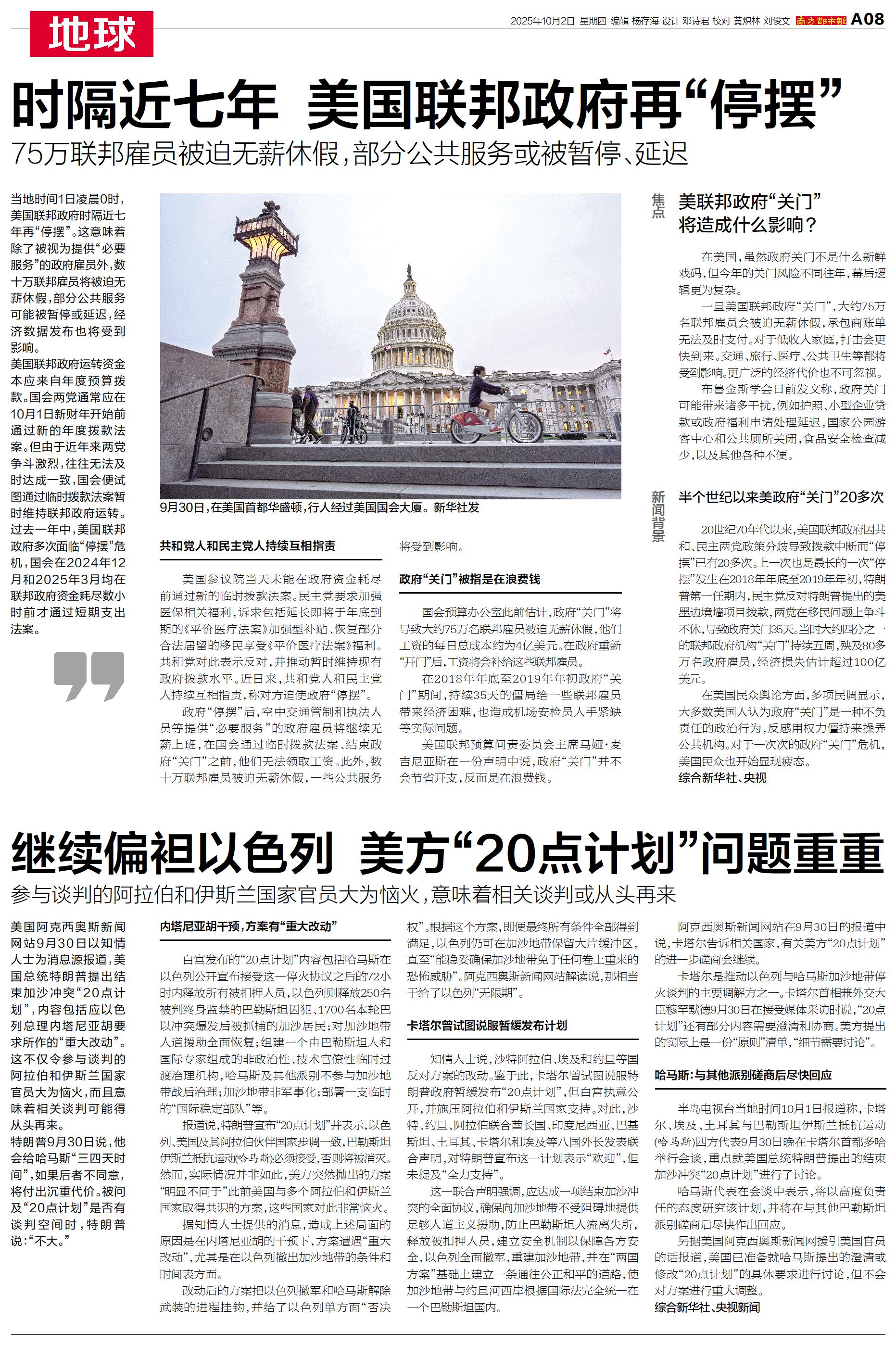 美国阿克西奥斯新闻网站9月30日以知情人士为消息源报道,美国总统特朗普提出结束加沙冲突“20点计划”,内容包括应以色列总理内塔尼亚胡要求所作的“重大改动”。
