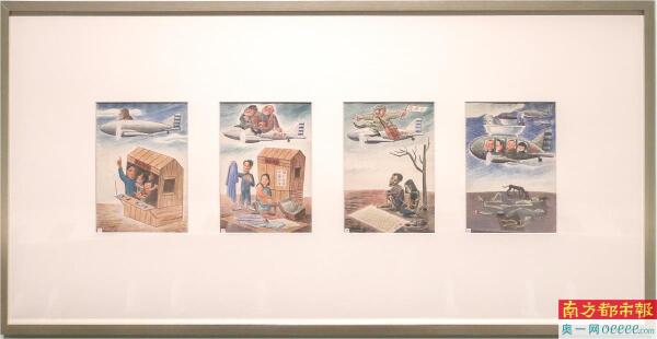 “我们特意将《廖冰兄全集》放置在展厅,供观众翻阅。尽管本次展览仅截取了廖冰兄先生早年抗战相关作品这一片段,但从这些早期创作中,已能清晰看到他贯穿一生的艺术底色:关注民生、目光向下的情怀。”策展人陈嘉顺表示,在抗战那段悲痛的岁月里,廖冰兄与许多经历过烽火的艺术家一样,主动将视角从“宏大叙事”转向“普罗百姓”——他的画笔不再局限于战场硝烟,而是聚焦普通民众的生活:记录他们在战乱中的苦难与坚守,描绘他们的挣扎与希望。这种“盯住普通中国人、为底层发声”的创作态度,既是他早年作品的鲜明特质,也成为他此后艺术生涯中一脉相承的精神内核。