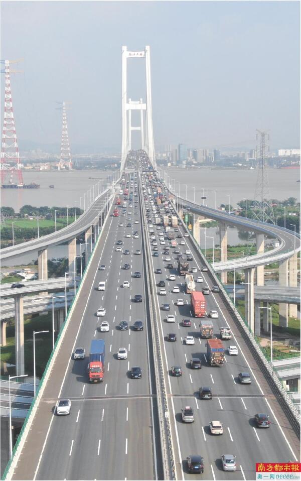 南沙大桥,在车流高峰时段启用开放硬路肩、匝道控制等多种策略,实现对主线、匝道车流的实时管控。 通讯员供图