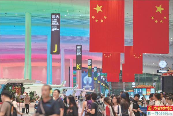 飞常准数据显示,在国庆中秋假期助推下,民航客流量快速上扬。 机场宣供图