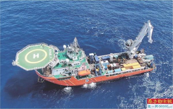 “海洋地质二号”科考船搭载“海马”号深海遥控潜水器在南海北部进行“源火”采集。 新华社发