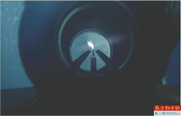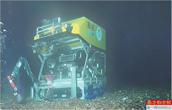 南海水深1522米处,冷泉喷口采集可燃冰。