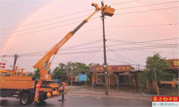 1. 10月6日,抢修队完成徐闻县和安镇10千伏和墟线线路修复工作,一道彩虹横跨雨后晴空。
