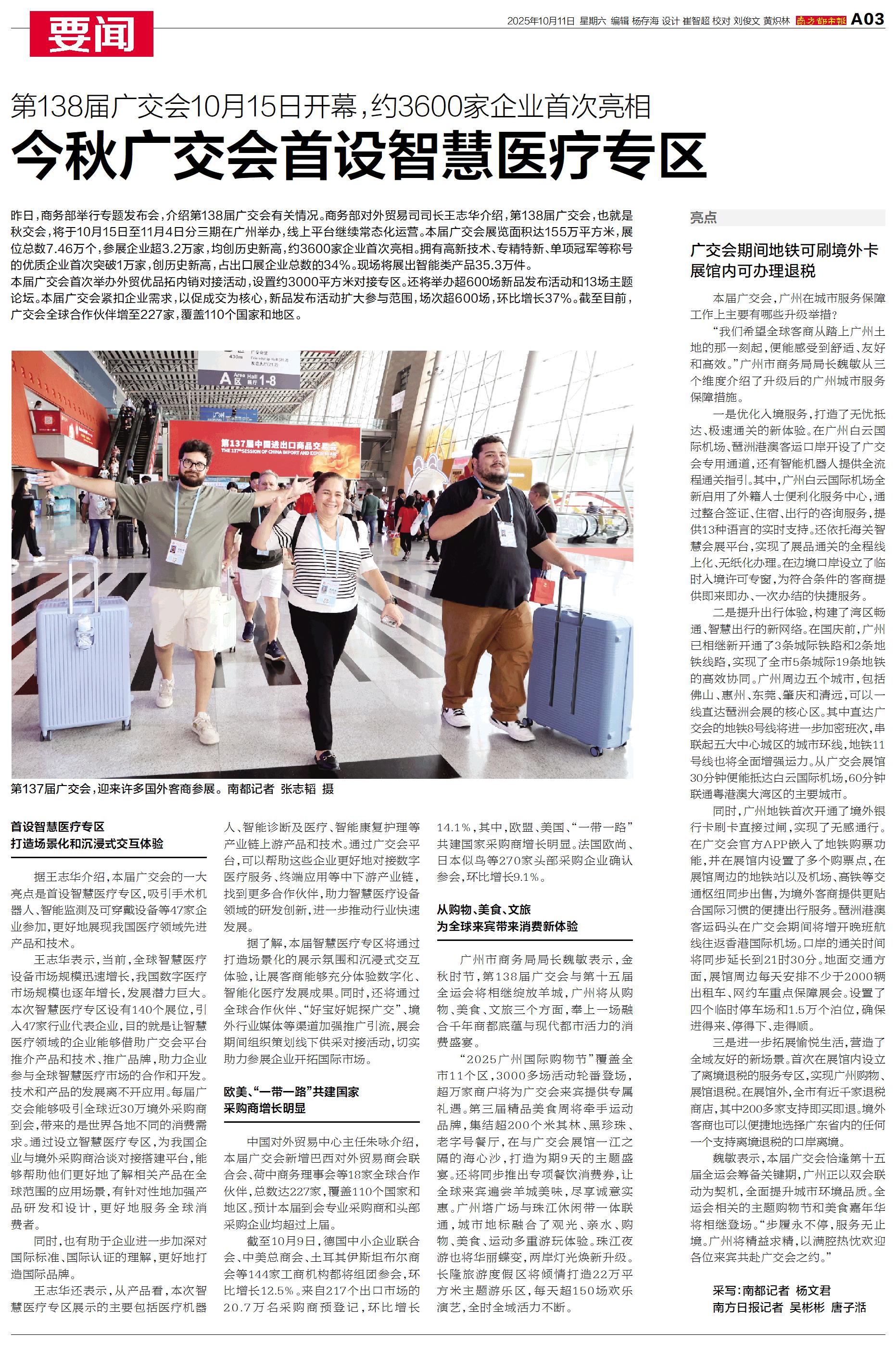 “我们希望全球客商从踏上广州土地的那一刻起,便能感受到舒适、友好和高效。”广州市商务局局长魏敏从三个维度介绍了升级后的广州城市服务保障措施。