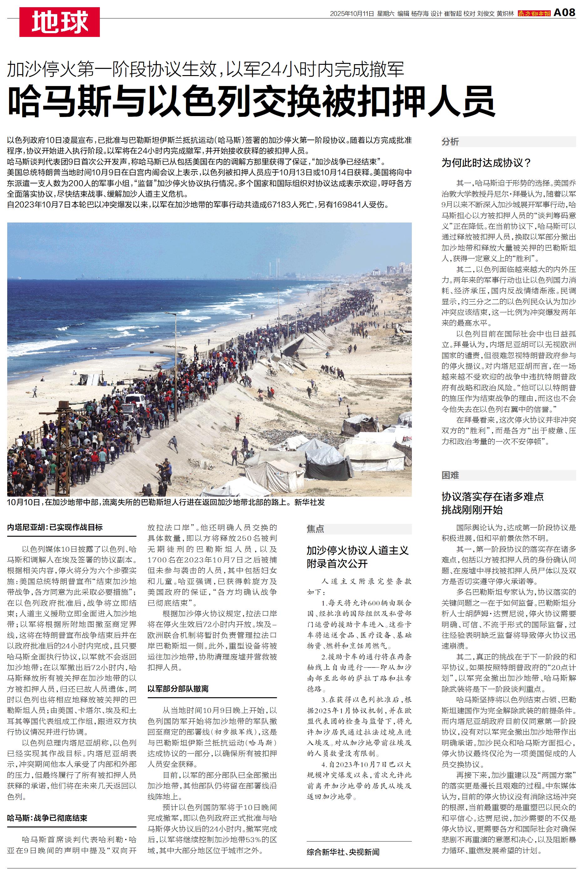 以色列政府10日凌晨宣布,已批准与巴勒斯坦伊斯兰抵抗运动(哈马斯)签署的加沙停火第一阶段协议。