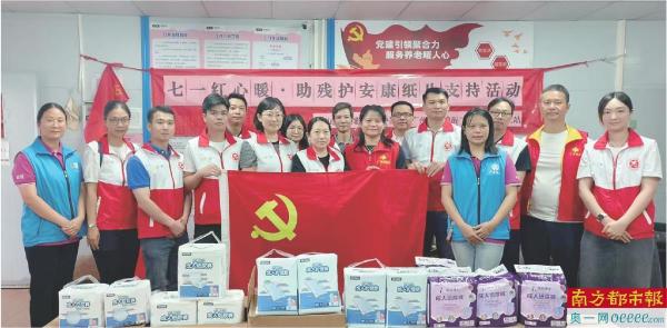 今年7月,志愿服务队再次联合黄埔区九佛街社工站党支部、枫下村党委,开展“七一红心暖·助残护安康”助残活动,通过精准匹配需求、党员认领“微心愿”的方式,为失能家庭送上日常护理物资,将福彩的温暖和责任送到群众身边。