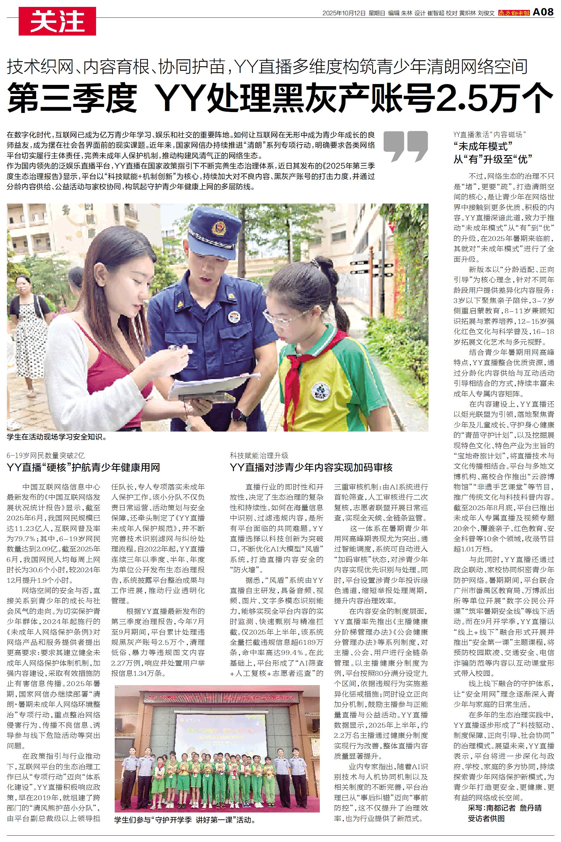 第三季度 YY处理黑灰产账号2.5万个