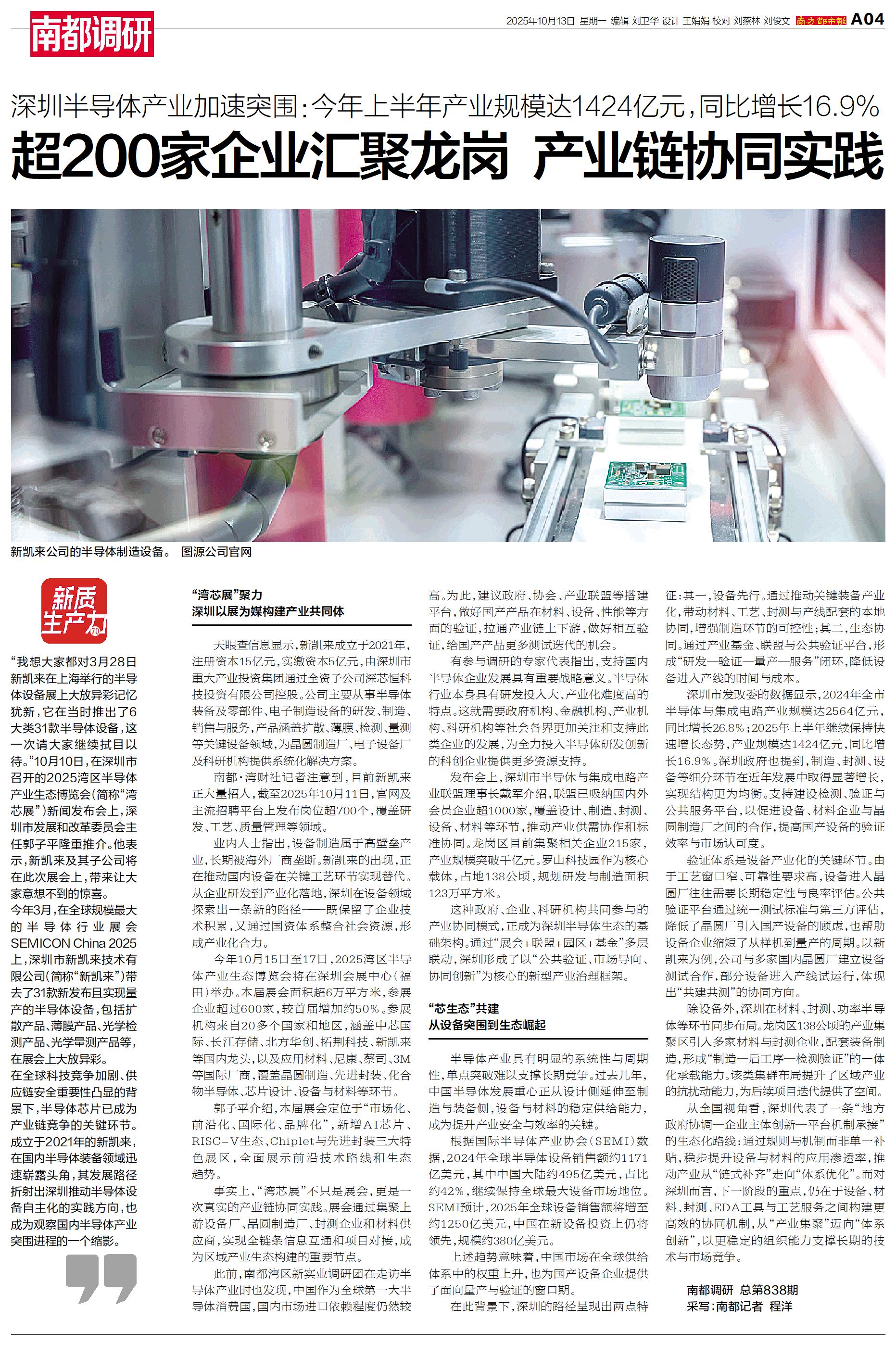 10月10日,在深圳市召开的2025湾区半导体产业生态博览会(简称“湾芯展”)新闻发布会上,深圳市发展和改革委员会主任郭子平隆重推介。