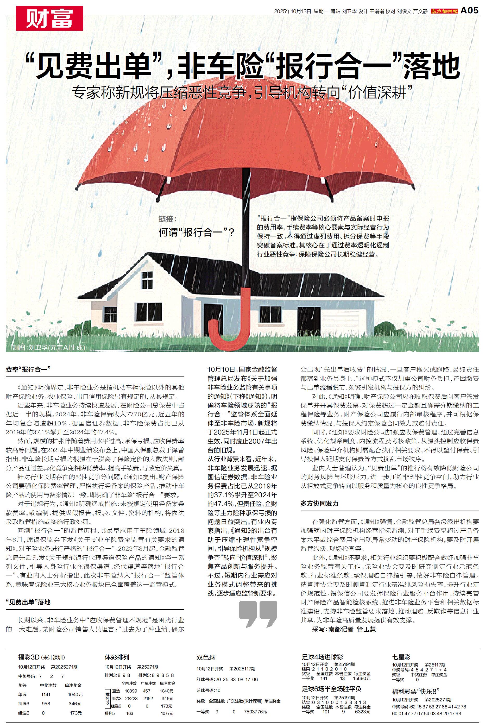 10月10日,国家金融监督管理总局发布《关于加强非车险业务监管有关事项的通知》,明确将车险领域成熟的“报行合一”监管体系全面延伸至非车险市场,新规将于2025年11月1日起正式生效,同时废止2007年