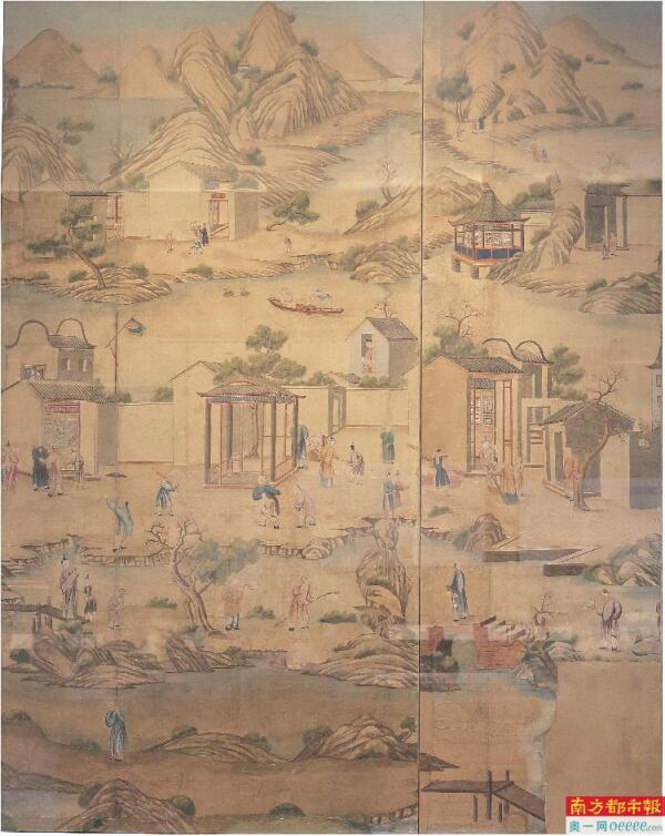 清乾隆农耕商贸图外销壁纸。