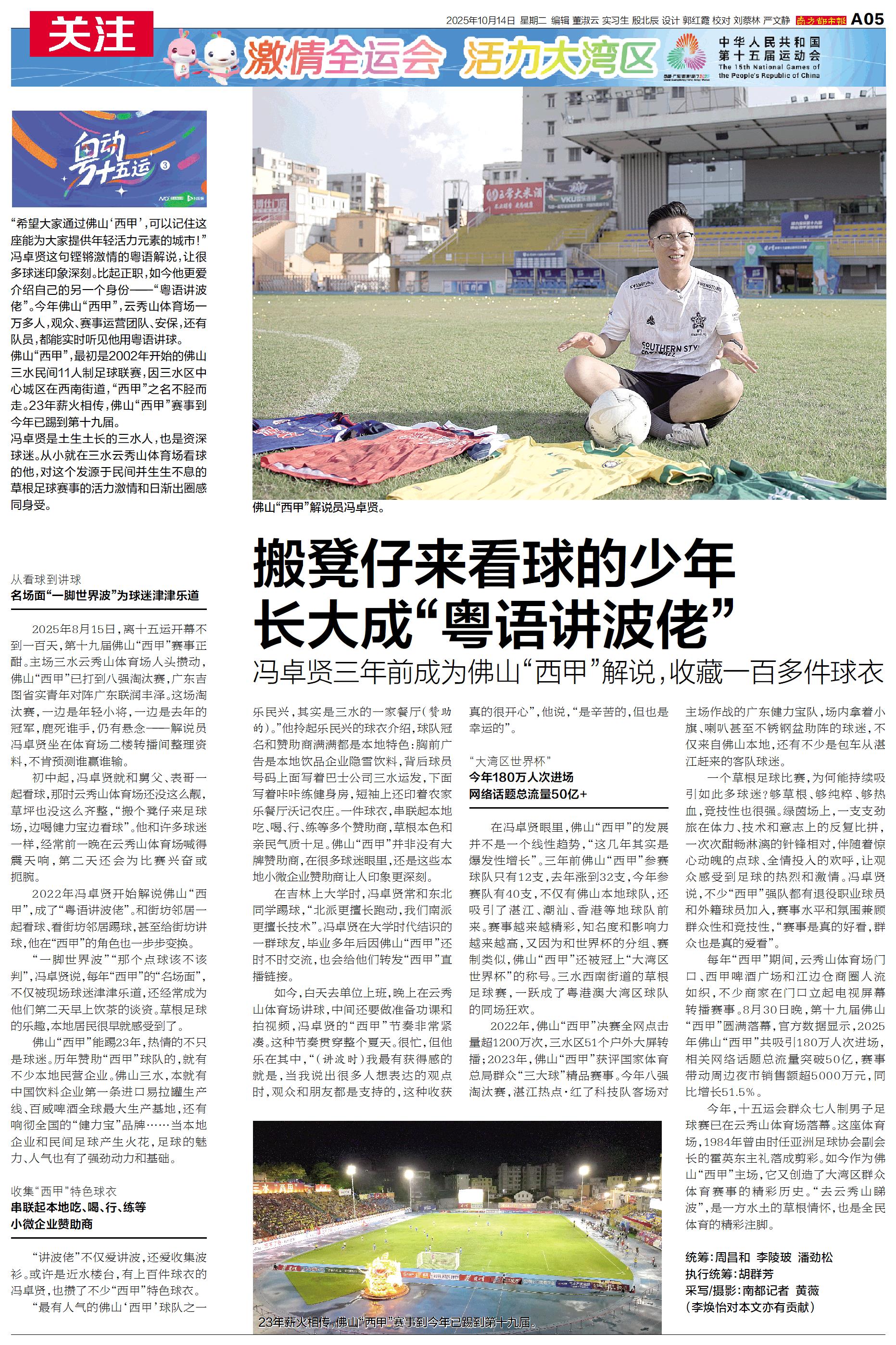 “希望大家通过佛山‘西甲’,可以记住这座能为大家提供年轻活力元素的城市!”冯卓贤这句铿锵激情的粤语解说,让很多球迷印象深刻。