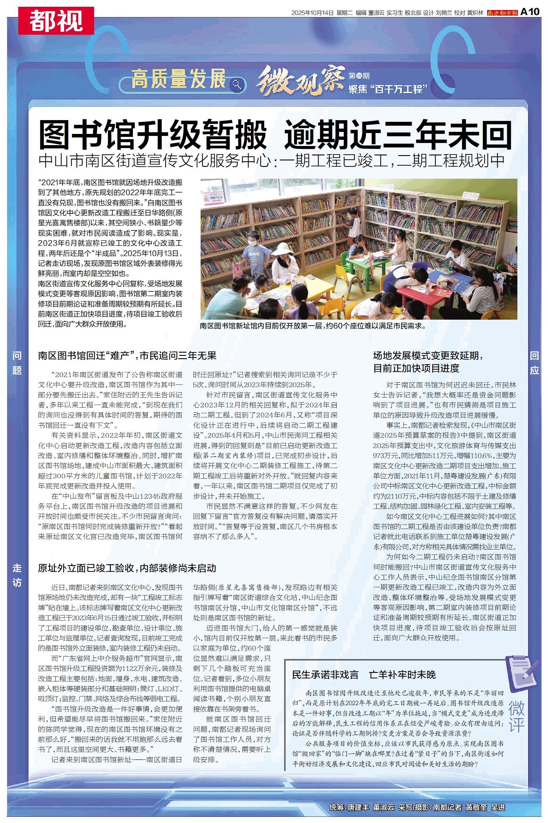 自南区图书馆因文化中心更新改造工程搬迁至日华路侧(原星光喜寓售楼部)以来,其空间狭小、书籍量少等现实困难,就对市民阅读造成了影响。