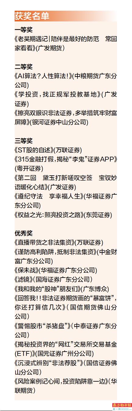 “社交媒体时代,微视频是破解‘信息难触达’的有效路径。”广东证券期货业协会会长廖卓在致辞中表示,新“国九条”明确提出要践行金融为民理念,更加有效地保护投资者特别是中小投资者的合法权益,这对投教工作提出更高要求。本次交流会既是对比赛成果的集中展示,也是经验共享、共同提升的平台。她希望:“从业人员以获奖单位为榜样,持续提升能力、探索创新,共同守护投资者信心。广东证券期货业协会也将继续发挥桥梁作用,搭建资源共享平台,携手推动广东投教工作高质量发展。”