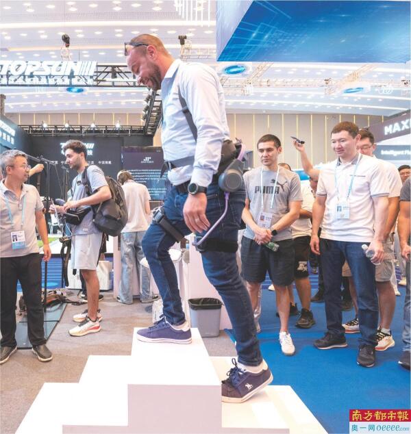 采购商正体验一款外骨骼助力设备。10月15日,第138届广交会开幕。第一期以“先进制造”为主题,设立服务机器人等专区。南都记者 张志韬 黎湛均 冯宙锋 摄