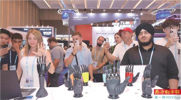 众多采购商体验仿生手训练。