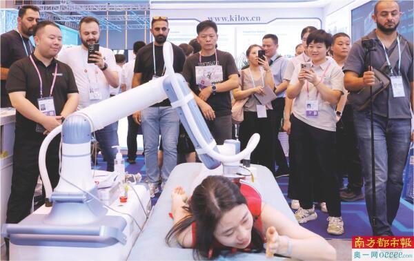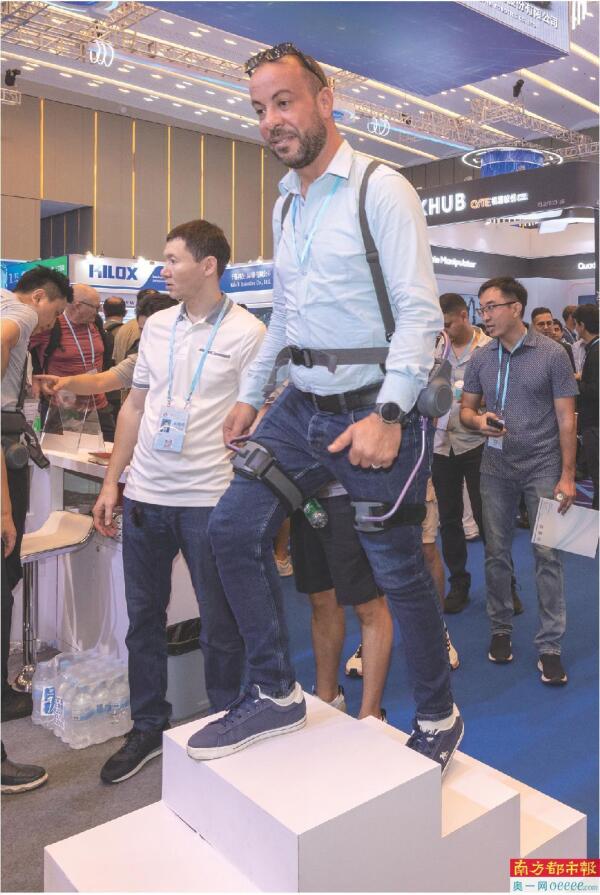 体验直接转化为订单。仅当日上午,该工作人员就与三位客商达成交易。“像这个登山用的外骨骼机械价格是800美元,”他分享道,“今天就有一位来自马来西亚的客商,他是腿脚比较不太方便的中老年人,可能觉得逛这个展太累了,所以就买了一个。”除个人买家外,他表示具备交易意向的公司众多,但因展台过于火爆,尚未来得及统计具体数量。
