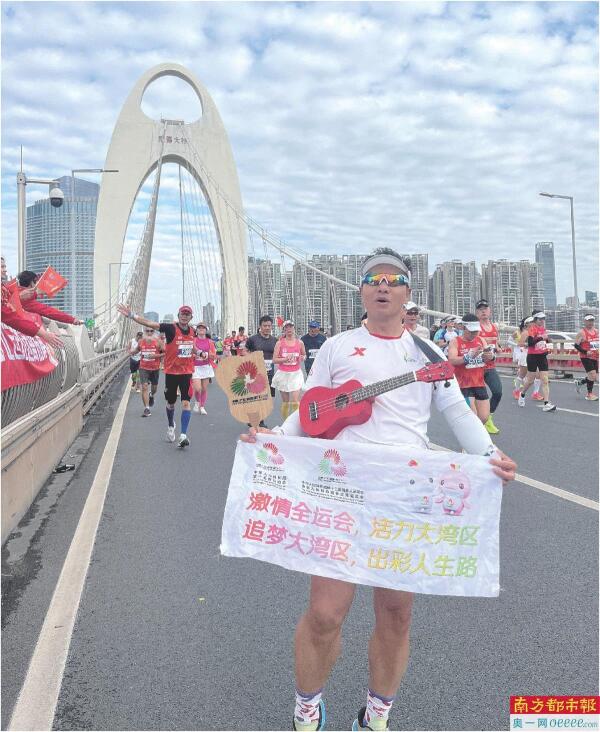 而在他热爱的马拉松赛道上,邵振刚还多了一个身份——全运会志愿“宣传大使”。他和同事自发定制了多版印有全运会会徽、赛会口号和吉祥物的宣传横幅。每次双休日外出跑马,他都会在赛前博览会、起跑线上与终点冲刺时举起双手展示横幅。“许多外地跑友看到,都会很好奇地主动过来和我交流,而我会向他们介绍全运会的筹备情况。”